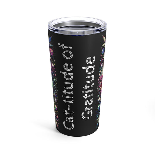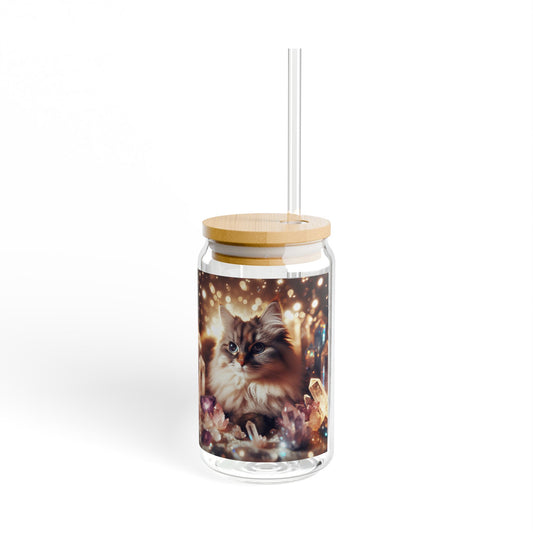 Glass Tumbler with Cat and Crystals Design, 16oz