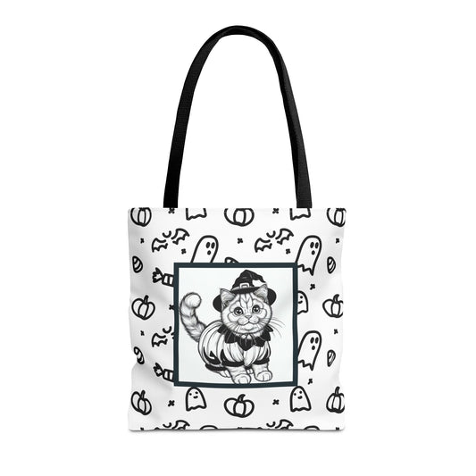 Color Your Own Trick-or-Treat Tote Bag with Cat, Bats, Candy and Pumpkins