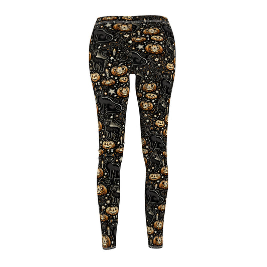 Leggings - Black Cat, Jack-o-Lantern, and Stars Print