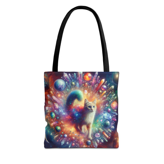 Colorful Cat Tote Bag with Crystals and Inspirational Quote